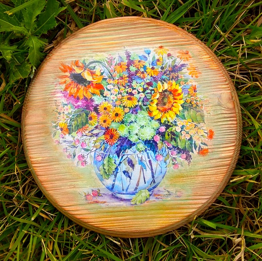Букет осени на досочке, которая украсит кухню и поможет в сервировке стола.