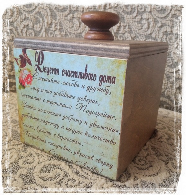 Материал: березовая фанера, деревянная ручка, небольшие ножки, водная морилка, акриловый безопасный лак.